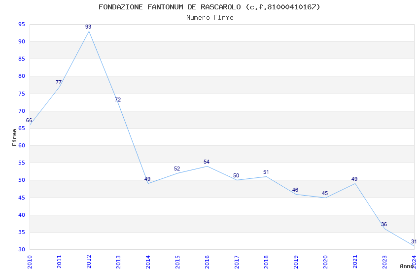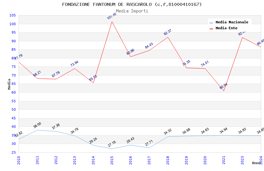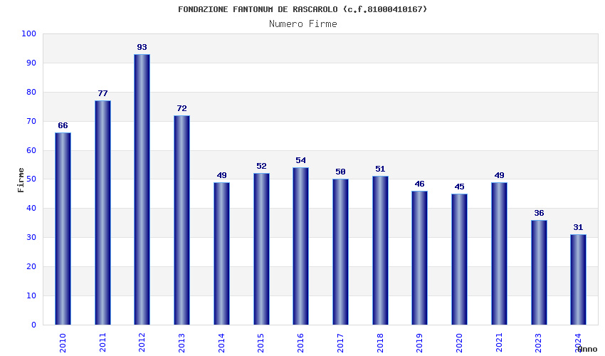 | Anno | Firme | Importi | Media | Naz. | Reg. | Prov. | Comu. |
