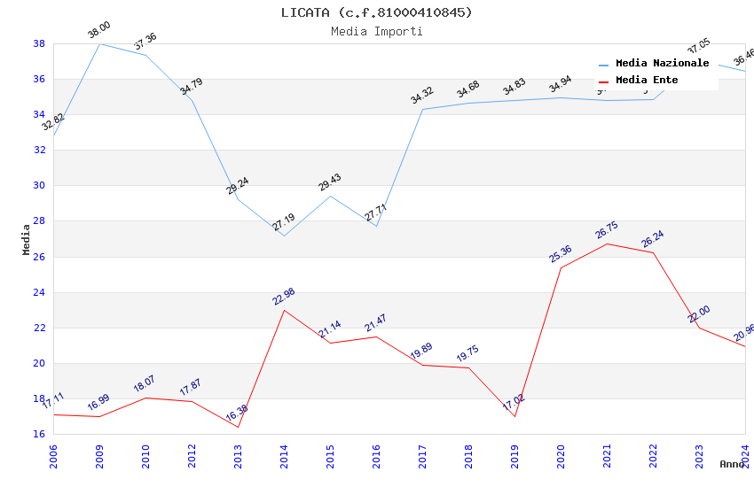 | Anno | Firme | Importi | Media | Naz. | Reg. | Prov. | Comu. |