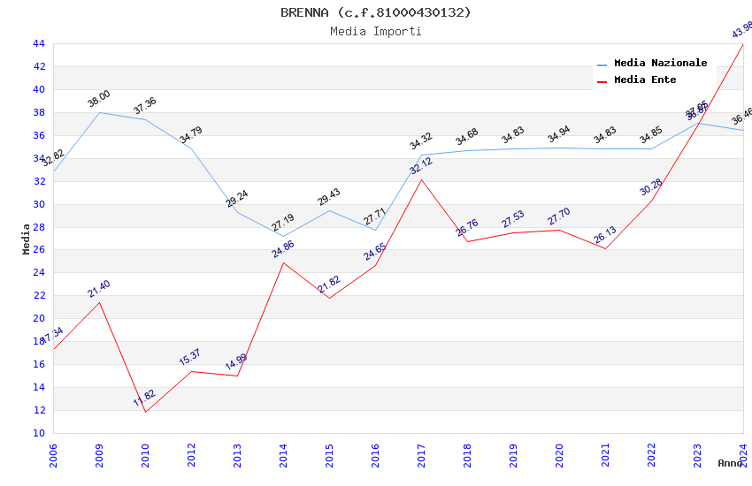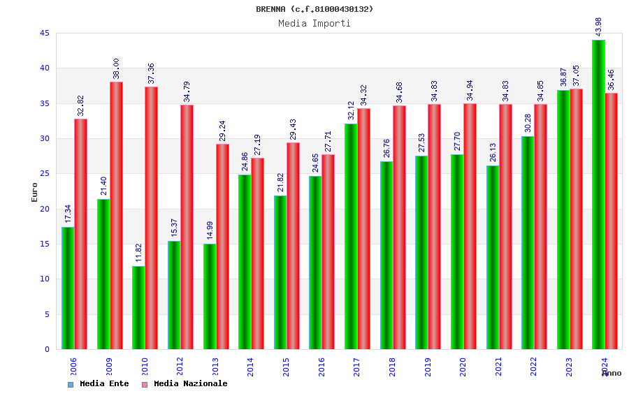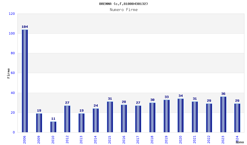 | Anno | Firme | Importi | Media | Naz. | Reg. | Prov. | Comu. |