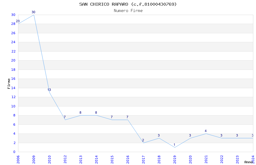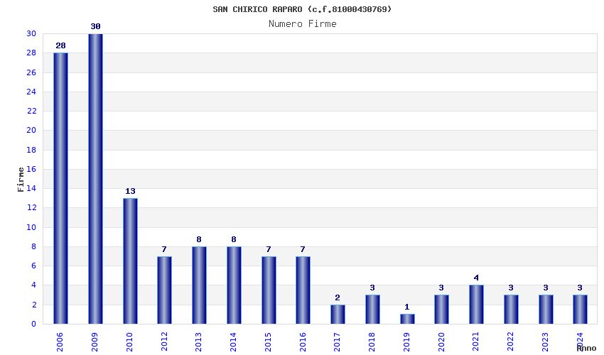 | Anno | Firme | Importi | Media | Naz. | Reg. | Prov. | Comu. |