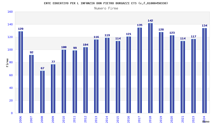 | Anno | Firme | Importi | Media | Naz. | Reg. | Prov. | Comu. |