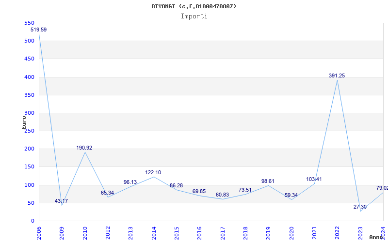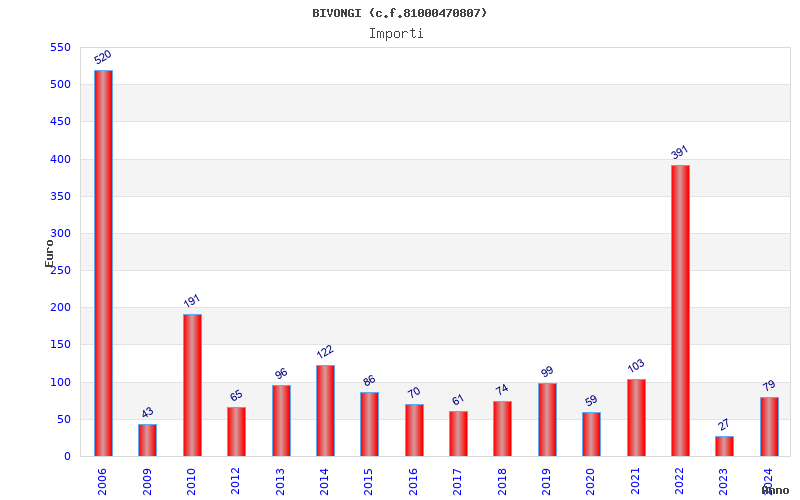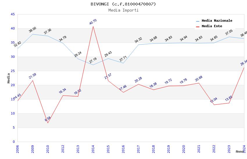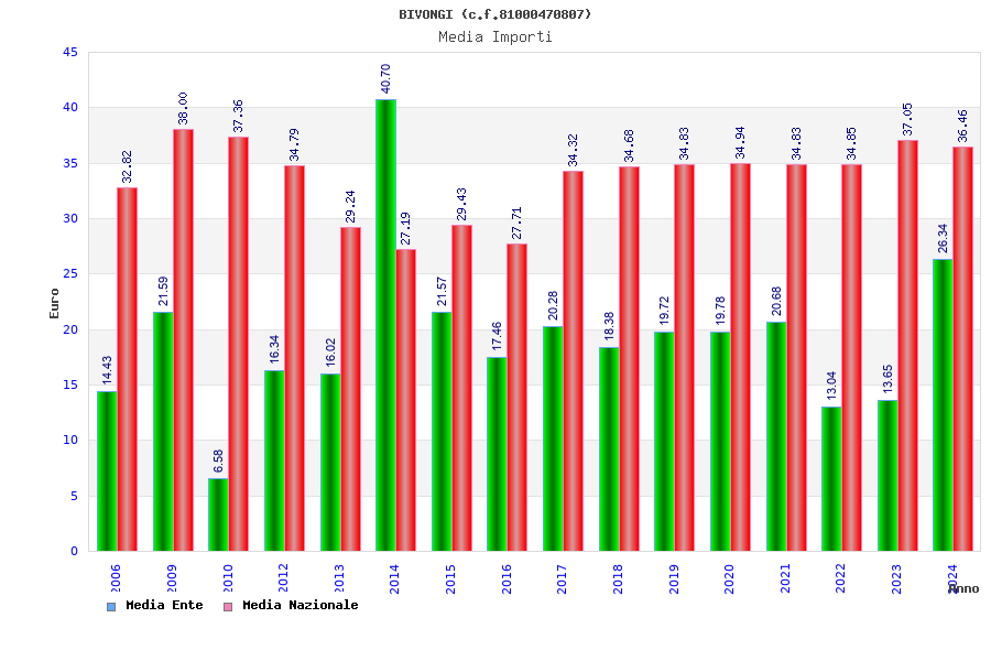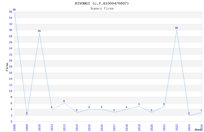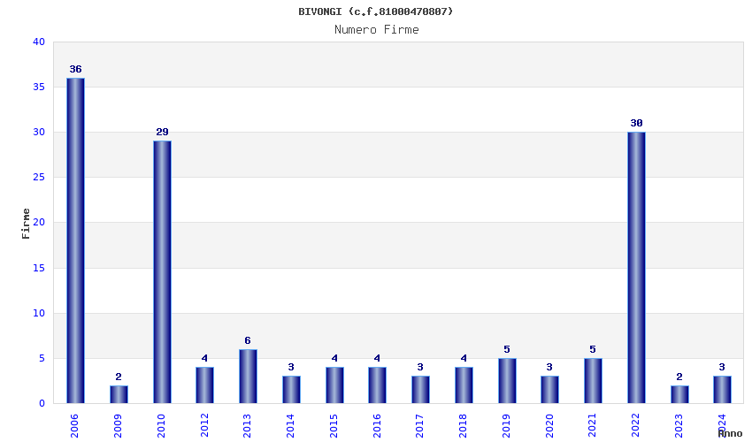 | Anno | Firme | Importi | Media | Naz. | Reg. | Prov. | Comu. |