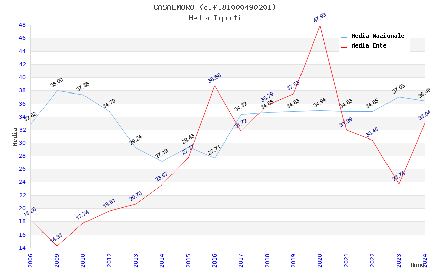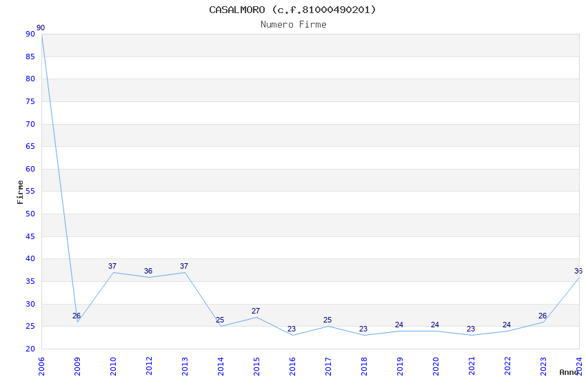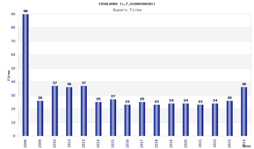 | Anno | Firme | Importi | Media | Naz. | Reg. | Prov. | Comu. |