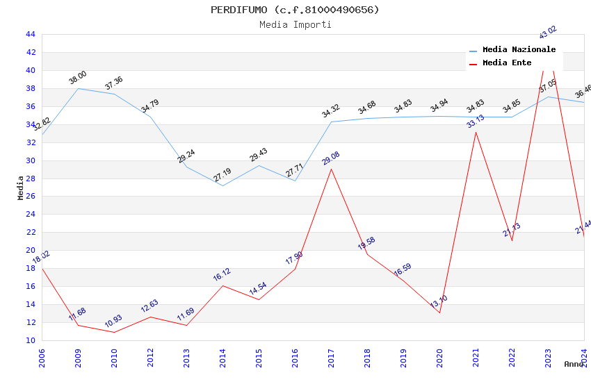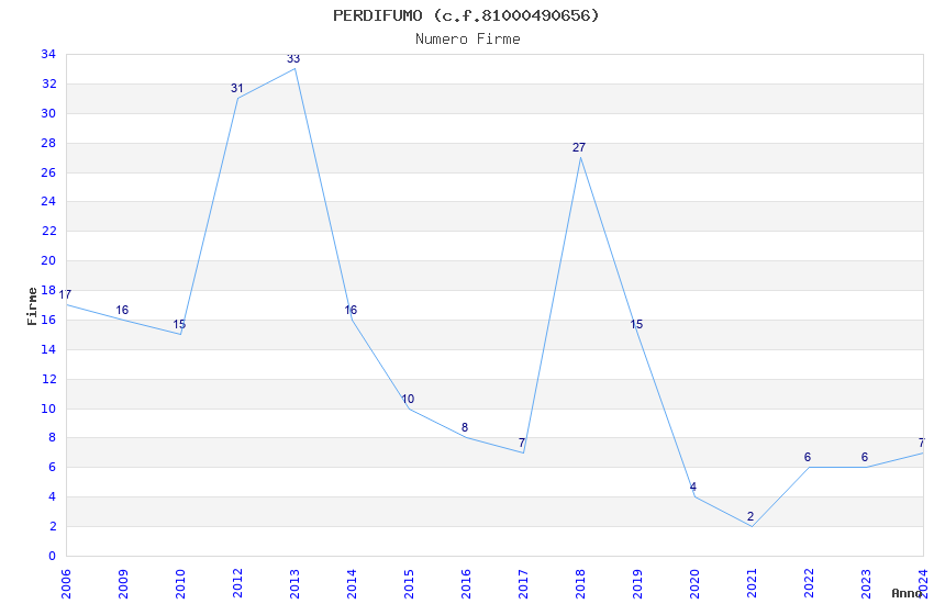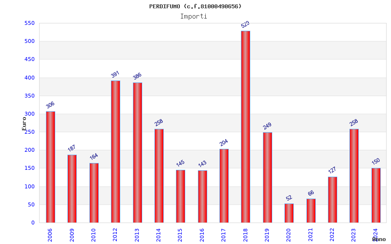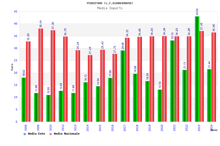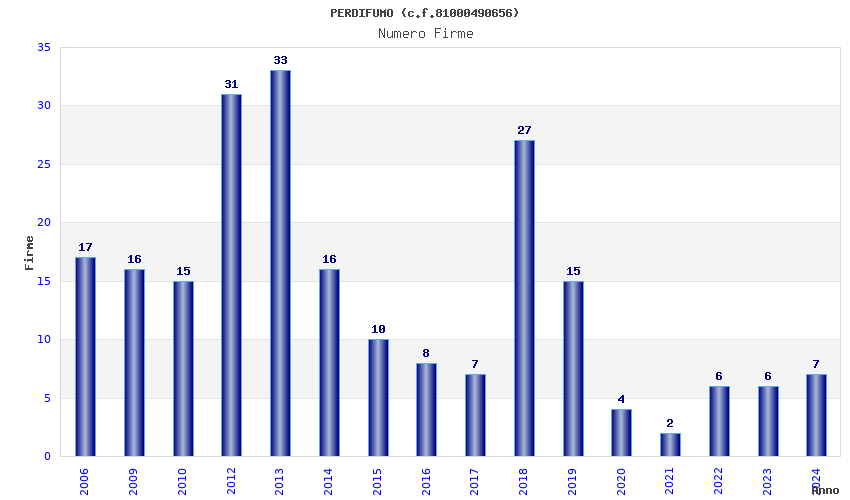 | Anno | Firme | Importi | Media | Naz. | Reg. | Prov. | Comu. |