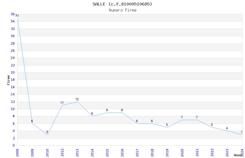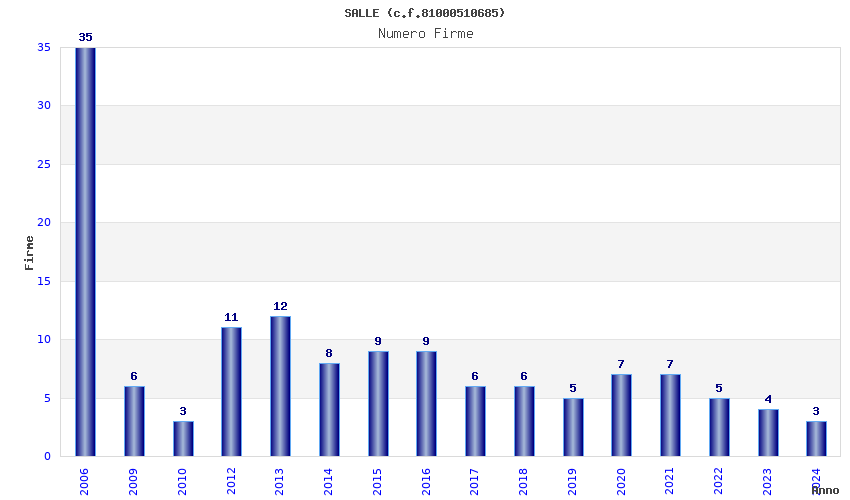 | Anno | Firme | Importi | Media | Naz. | Reg. | Prov. | Comu. |