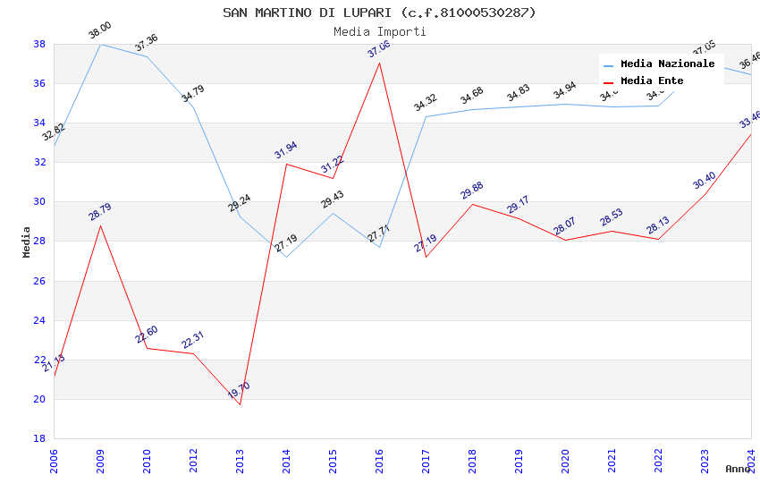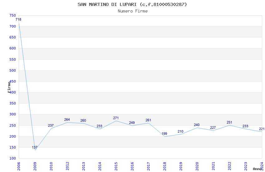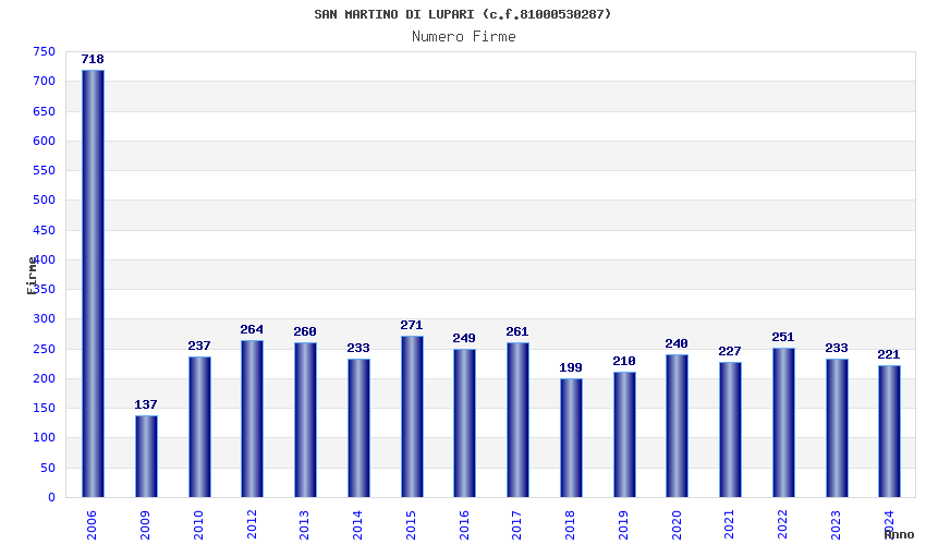 | Anno | Firme | Importi | Media | Naz. | Reg. | Prov. | Comu. |