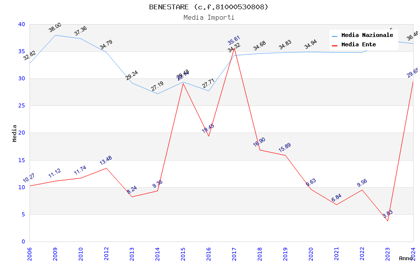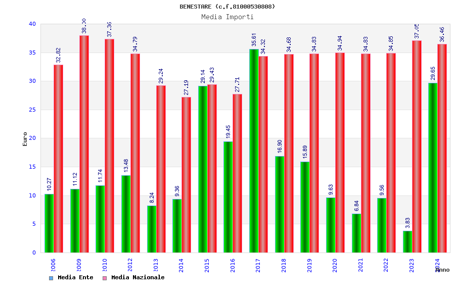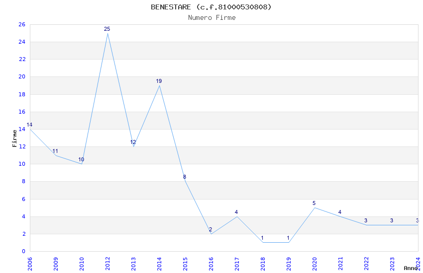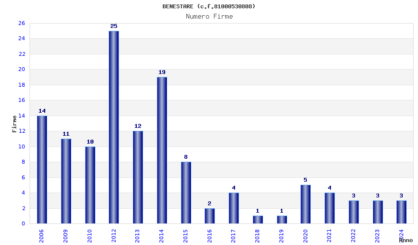 | Anno | Firme | Importi | Media | Naz. | Reg. | Prov. | Comu. |