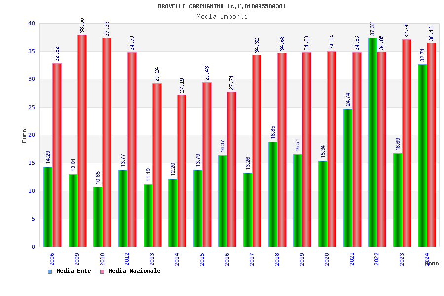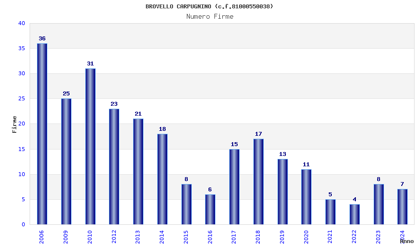 | Anno | Firme | Importi | Media | Naz. | Reg. | Prov. | Comu. |