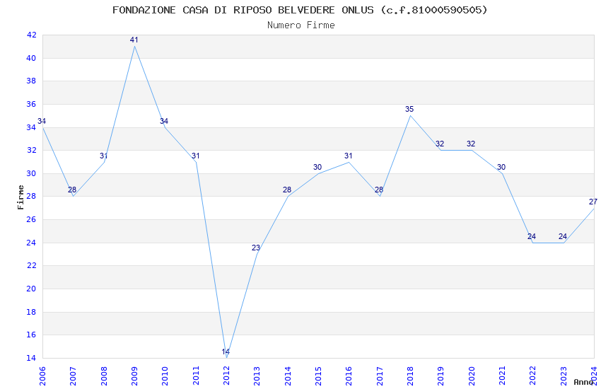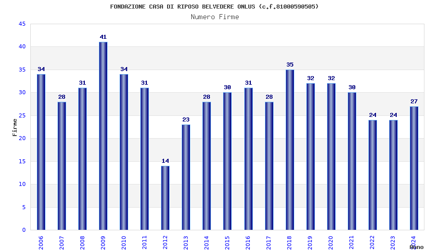 | Anno | Firme | Importi | Media | Naz. | Reg. | Prov. | Comu. |