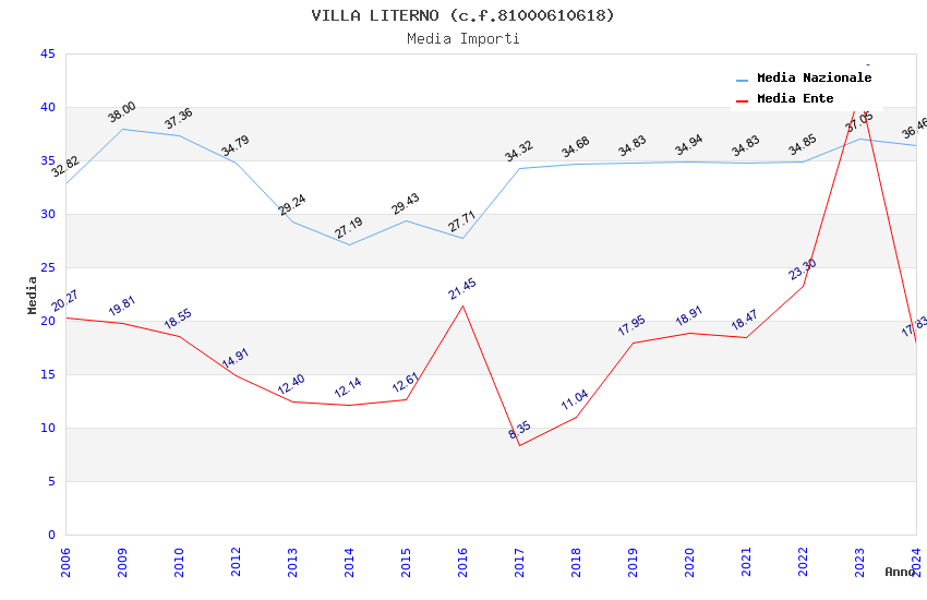 | Anno | Firme | Importi | Media | Naz. | Reg. | Prov. | Comu. |
