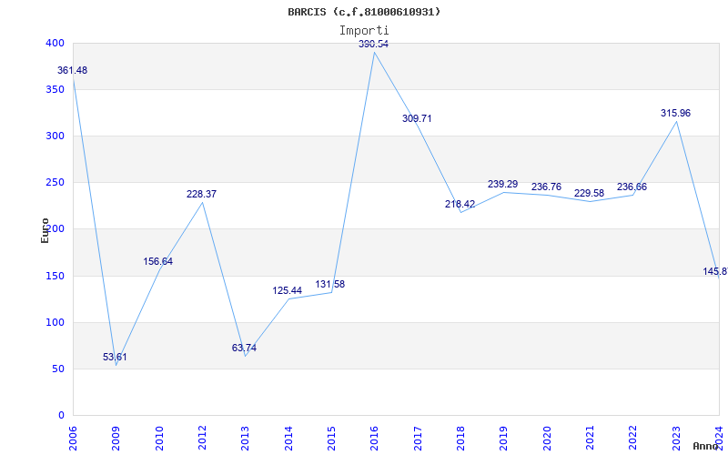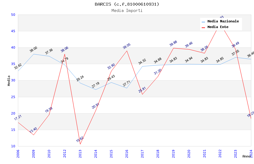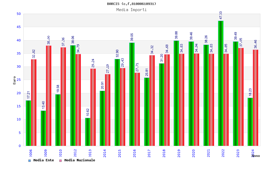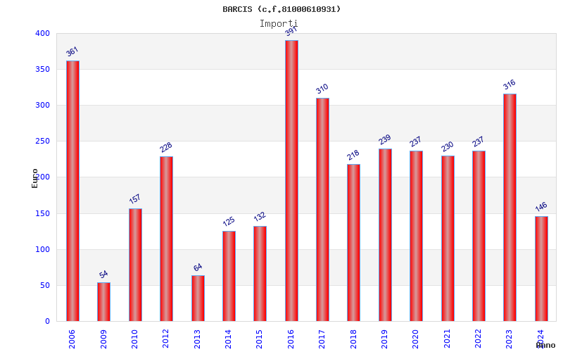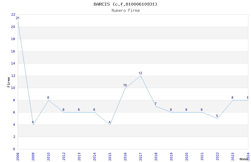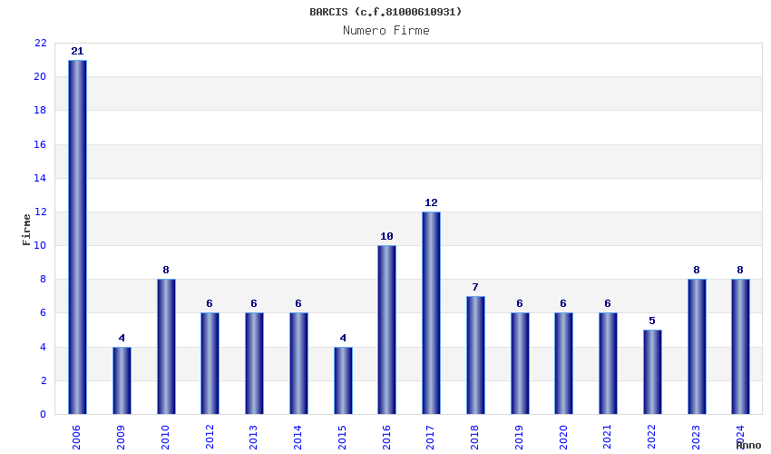 | Anno | Firme | Importi | Media | Naz. | Reg. | Prov. | Comu. |