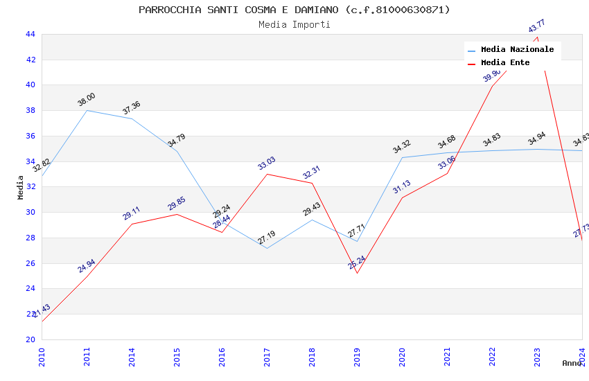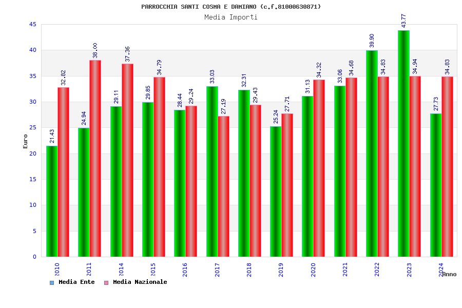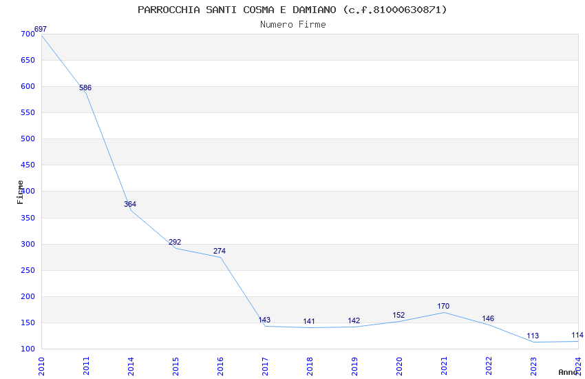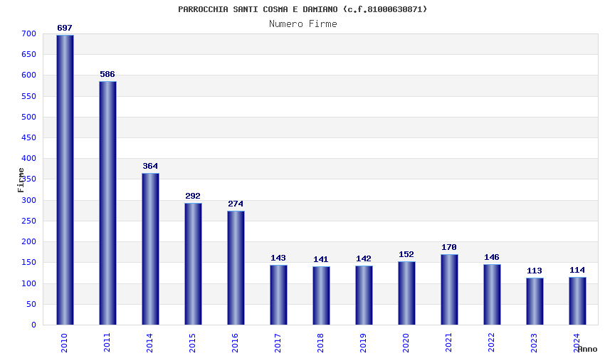 | Anno | Firme | Importi | Media | Naz. | Reg. | Prov. | Comu. |