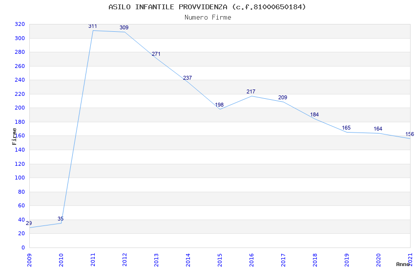 | Anno | Firme | Importi | Media | Naz. | Reg. | Prov. | Comu. |