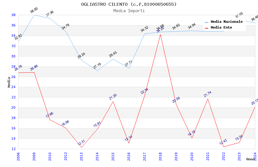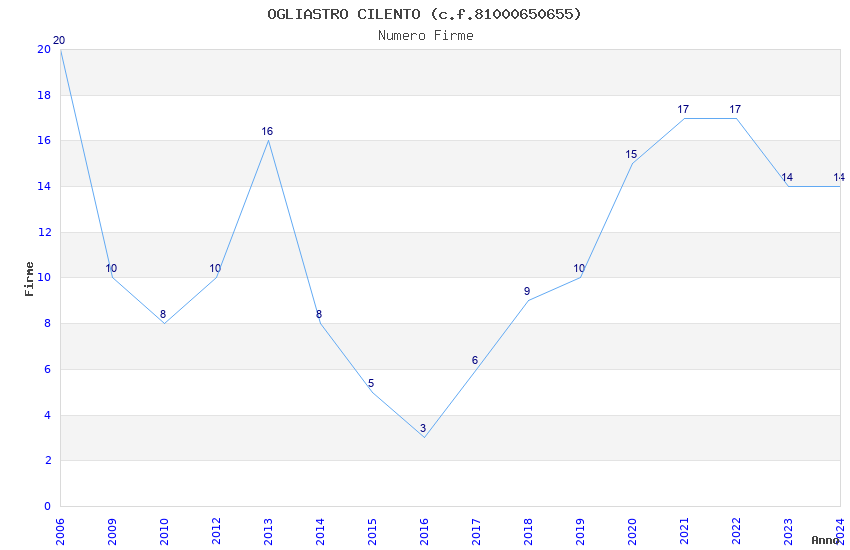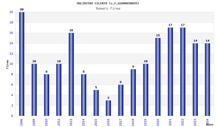 | Anno | Firme | Importi | Media | Naz. | Reg. | Prov. | Comu. |