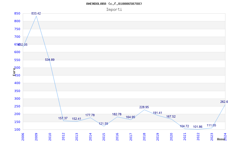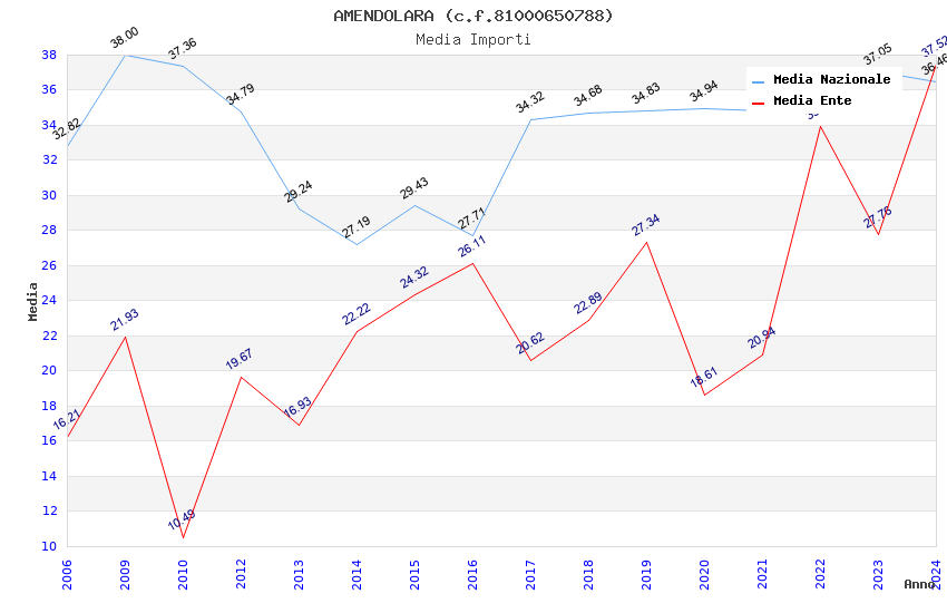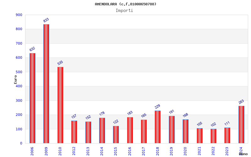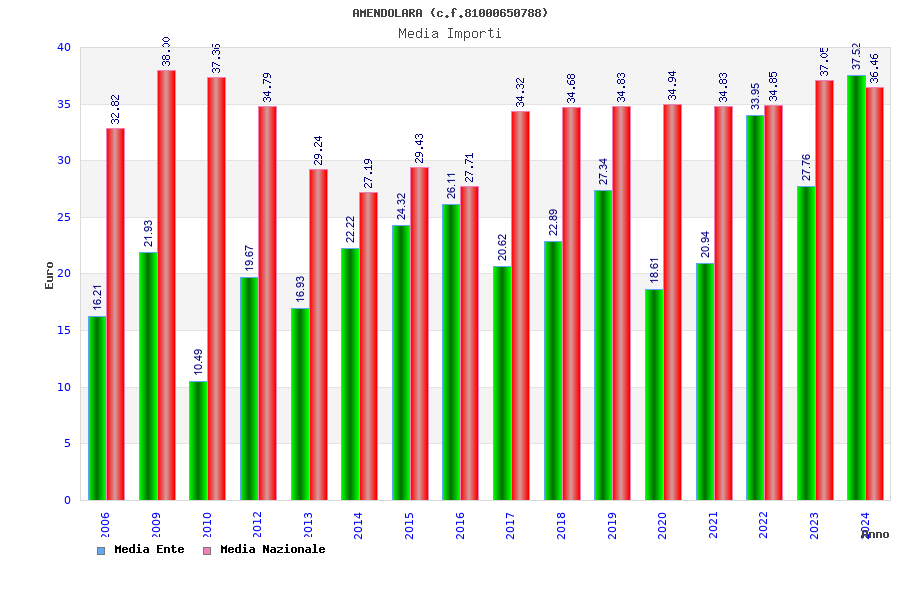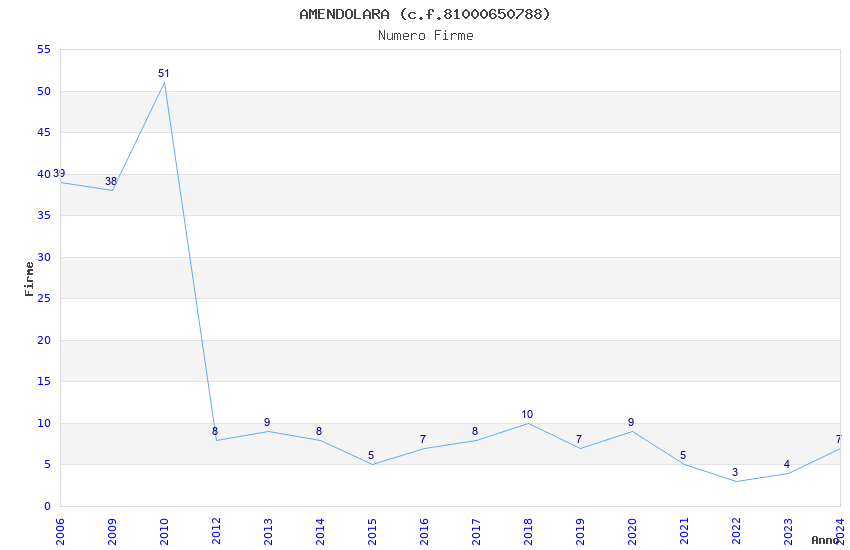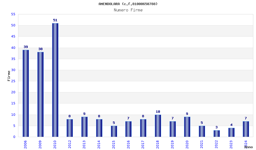 | Anno | Firme | Importi | Media | Naz. | Reg. | Prov. | Comu. |