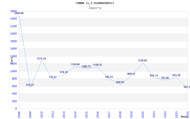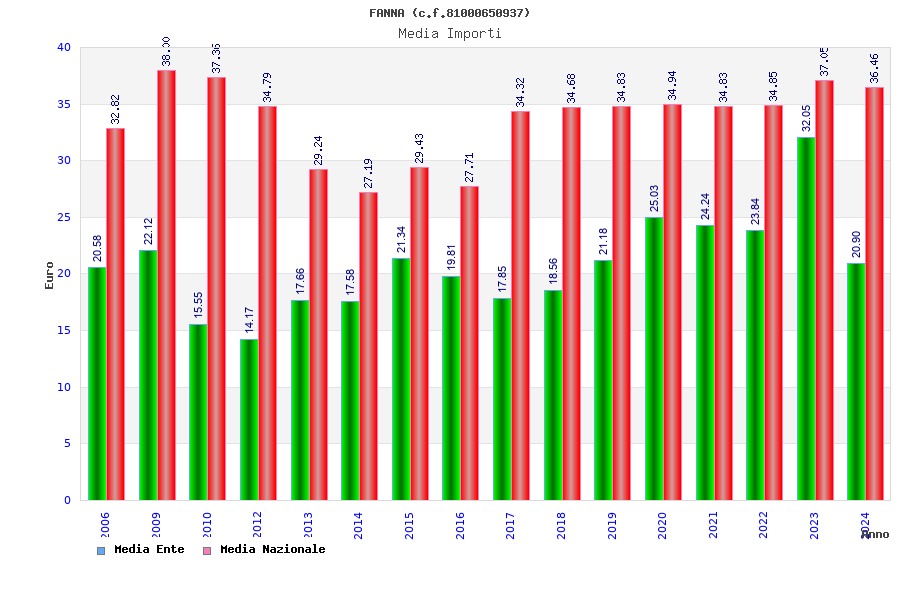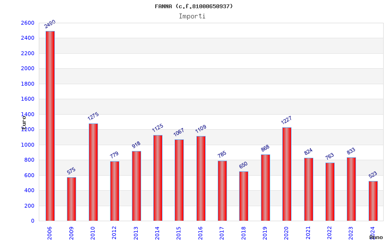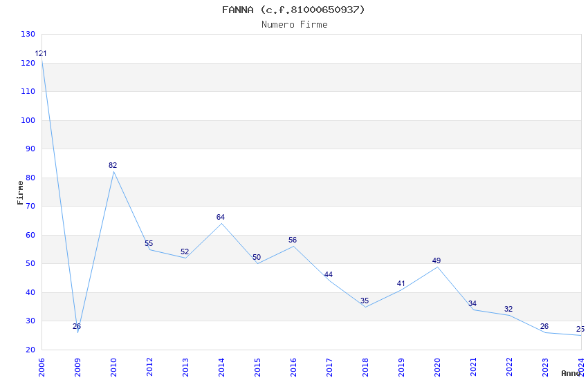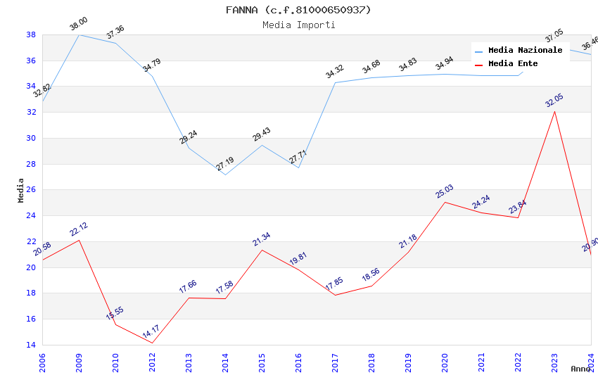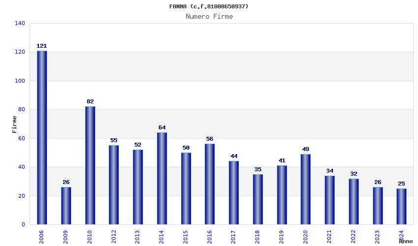 | Anno | Firme | Importi | Media | Naz. | Reg. | Prov. | Comu. |