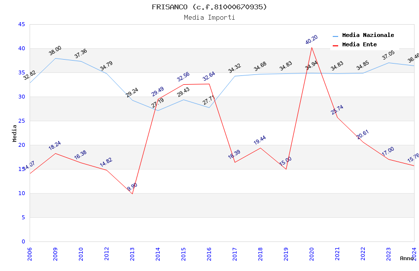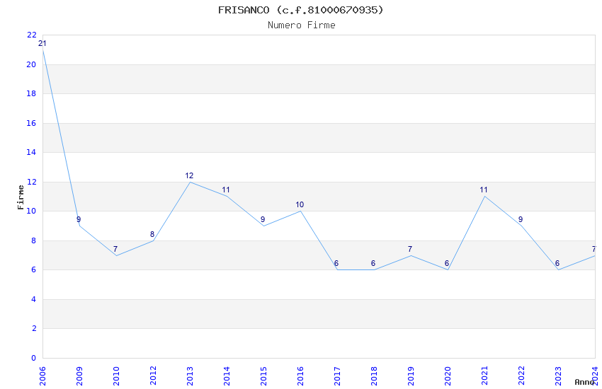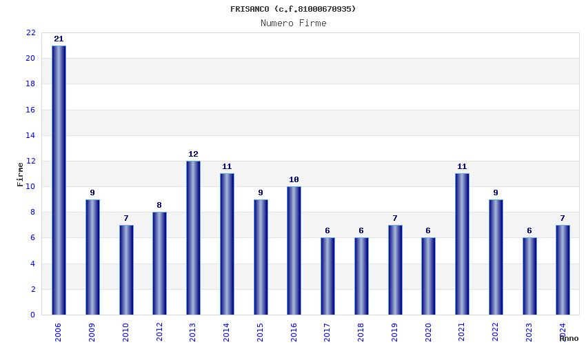 | Anno | Firme | Importi | Media | Naz. | Reg. | Prov. | Comu. |