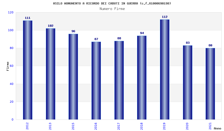 | Anno | Firme | Importi | Media | Naz. | Reg. | Prov. | Comu. |