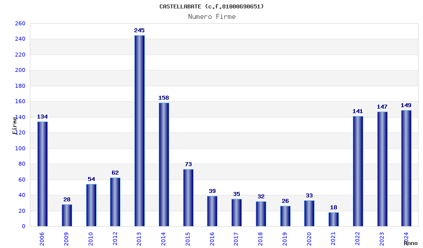 | Anno | Firme | Importi | Media | Naz. | Reg. | Prov. | Comu. |