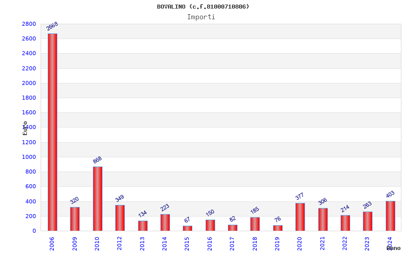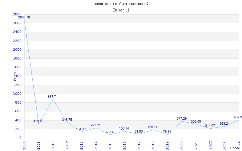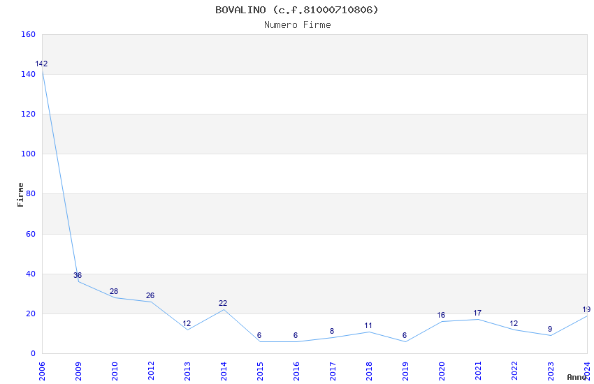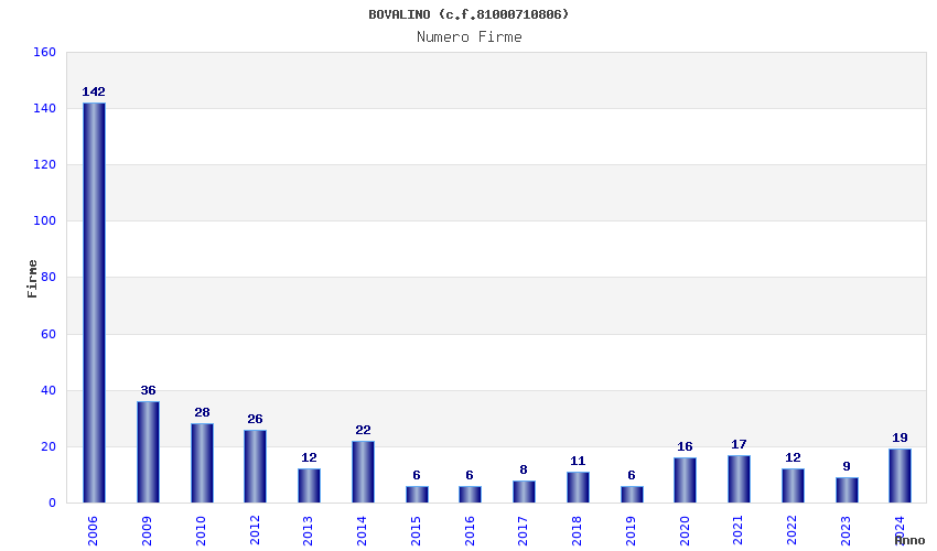 | Anno | Firme | Importi | Media | Naz. | Reg. | Prov. | Comu. |