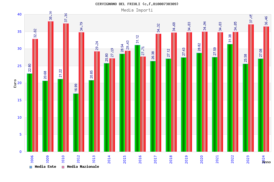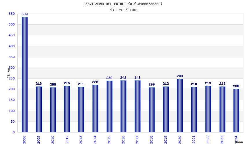 | Anno | Firme | Importi | Media | Naz. | Reg. | Prov. | Comu. |