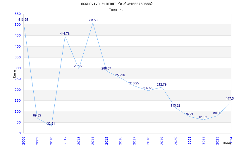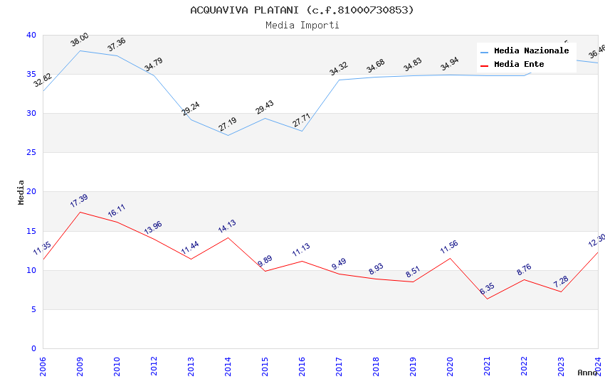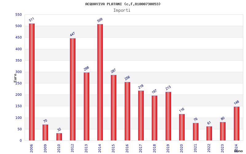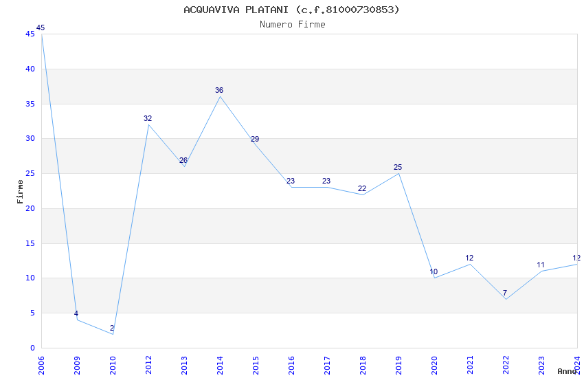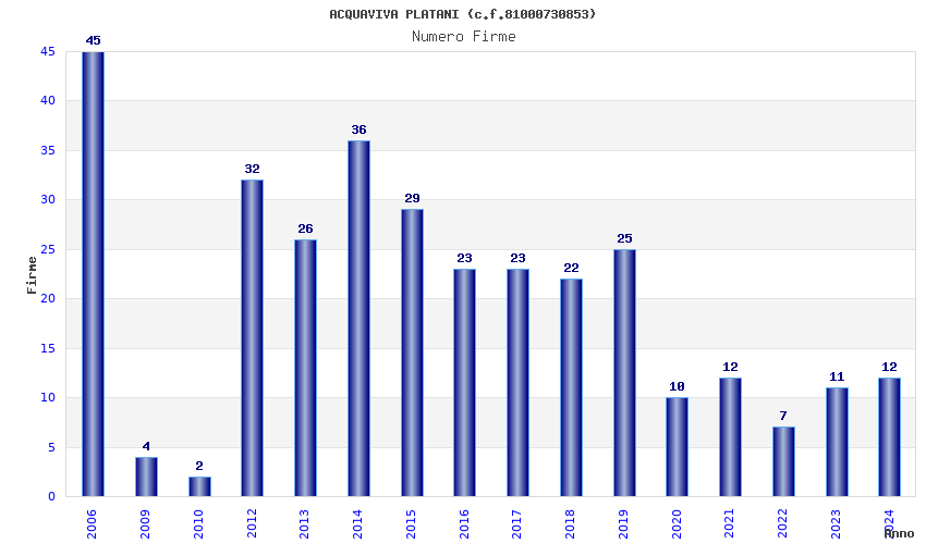 | Anno | Firme | Importi | Media | Naz. | Reg. | Prov. | Comu. |