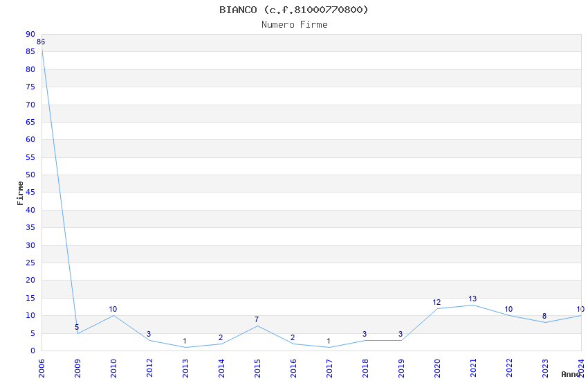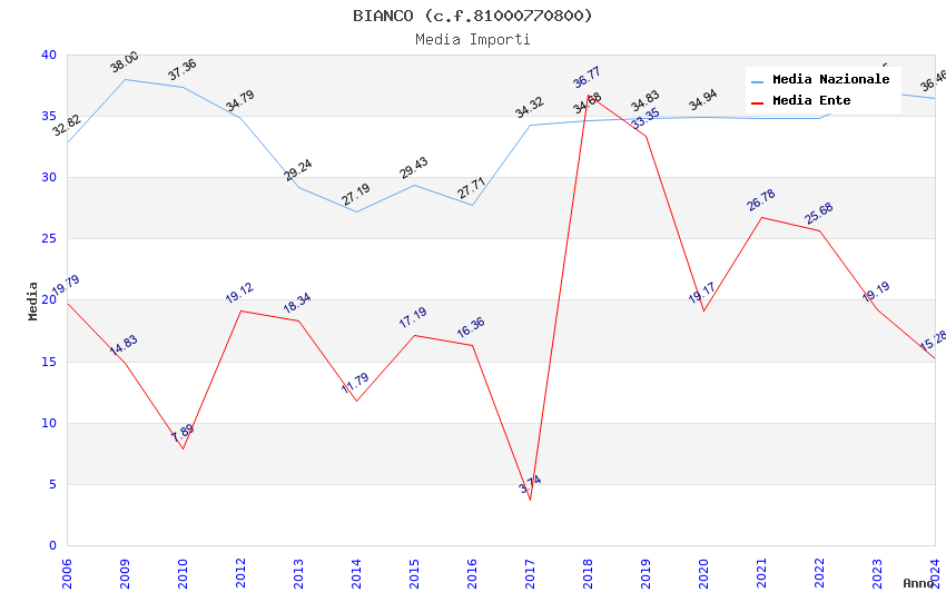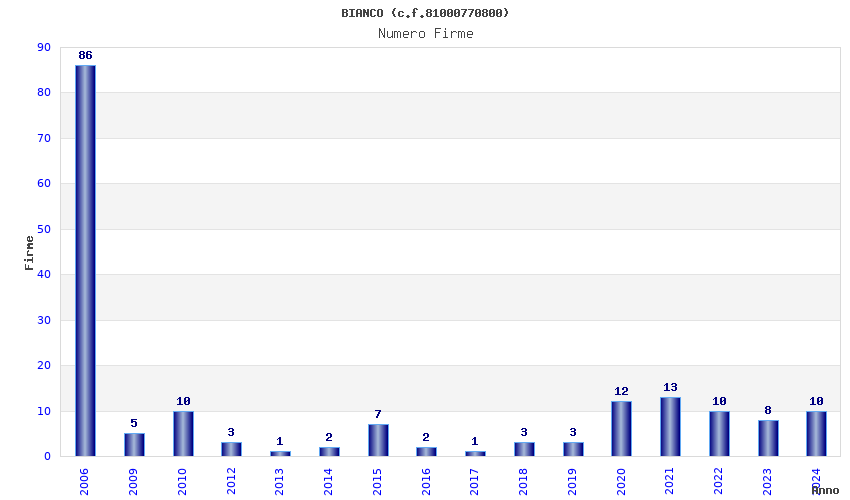 | Anno | Firme | Importi | Media | Naz. | Reg. | Prov. | Comu. |