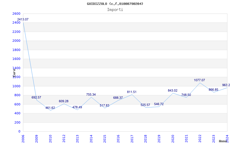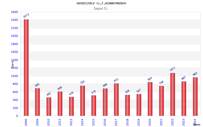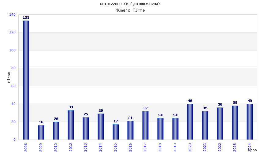 | Anno | Firme | Importi | Media | Naz. | Reg. | Prov. | Comu. |