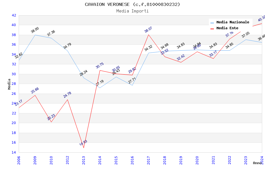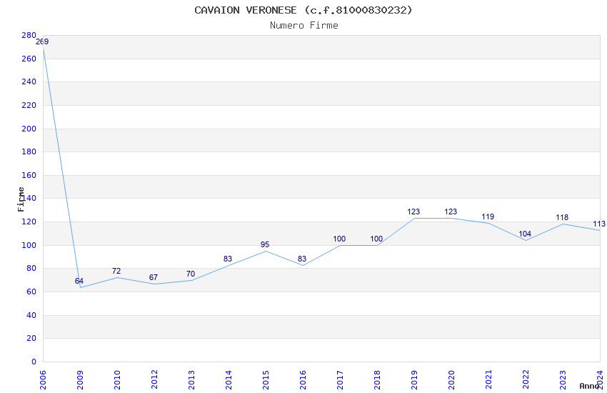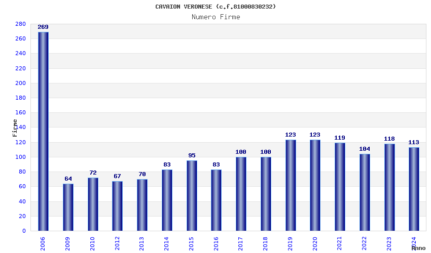 | Anno | Firme | Importi | Media | Naz. | Reg. | Prov. | Comu. |