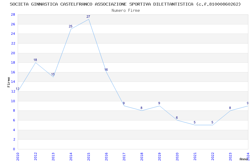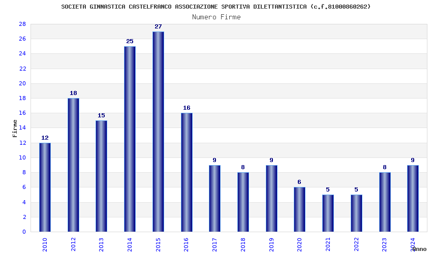 | Anno | Firme | Importi | Media | Naz. | Reg. | Prov. | Comu. |