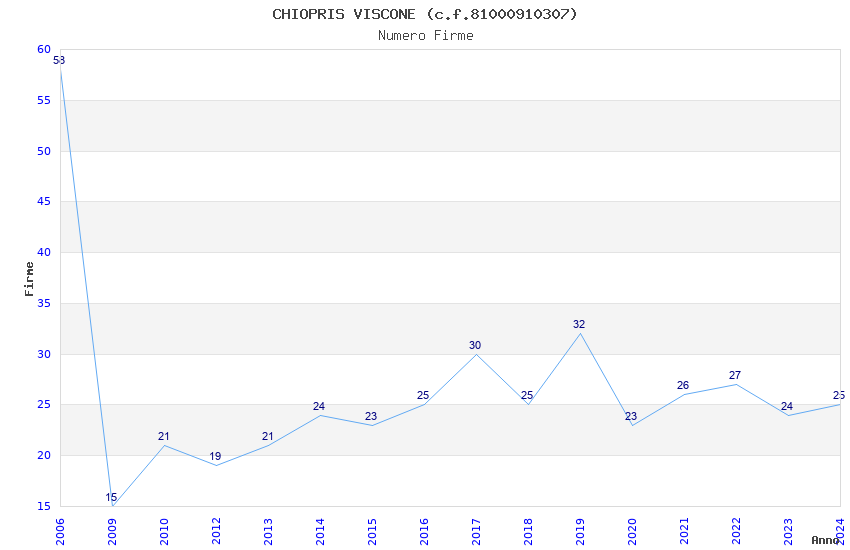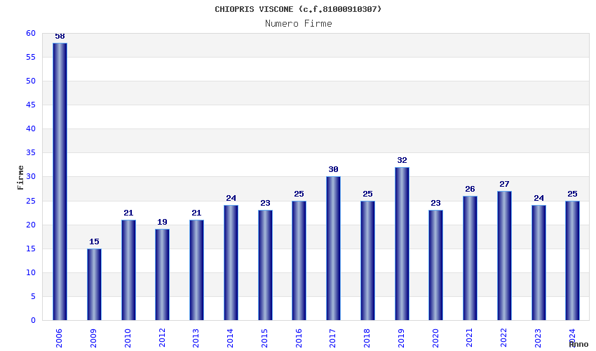 | Anno | Firme | Importi | Media | Naz. | Reg. | Prov. | Comu. |