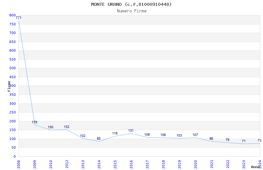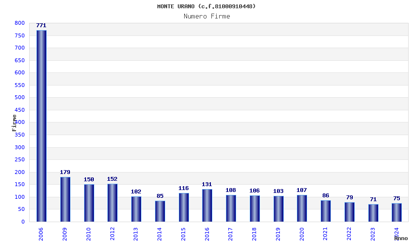 | Anno | Firme | Importi | Media | Naz. | Reg. | Prov. | Comu. |