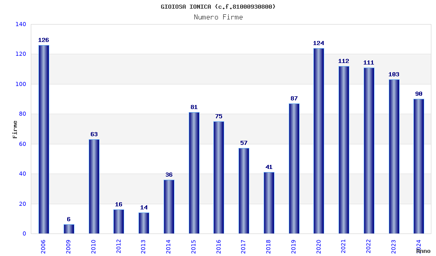 | Anno | Firme | Importi | Media | Naz. | Reg. | Prov. | Comu. |