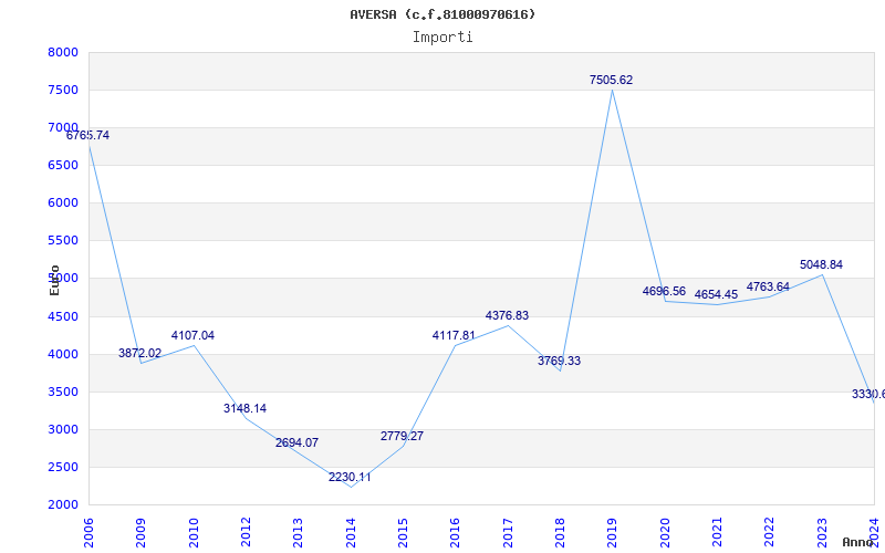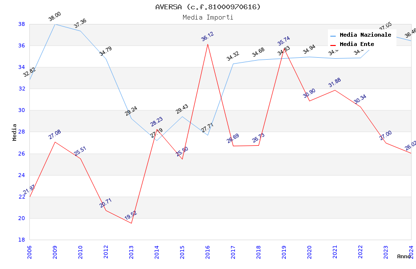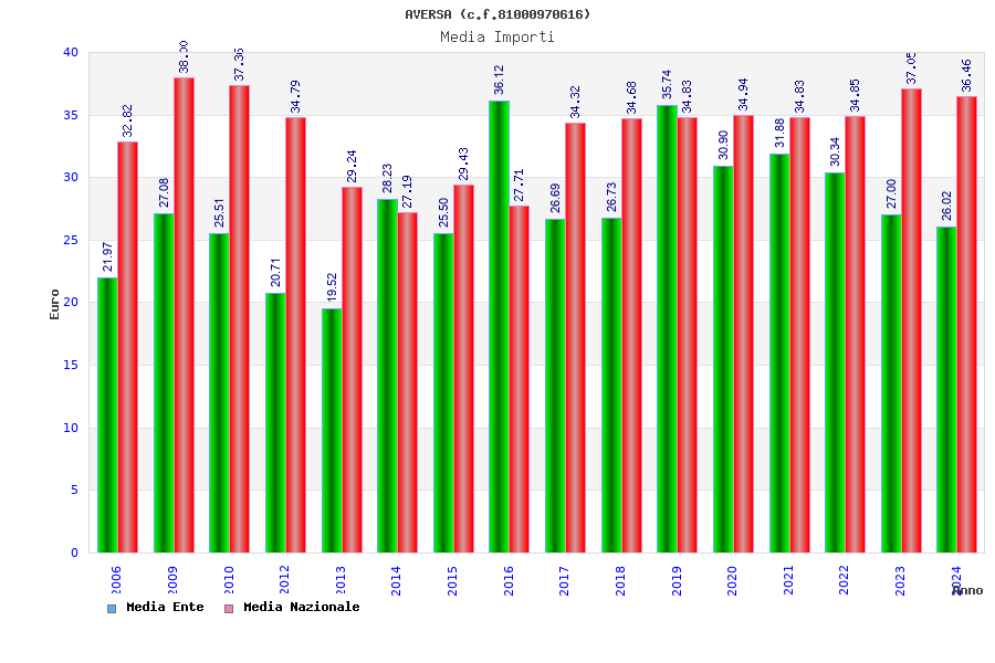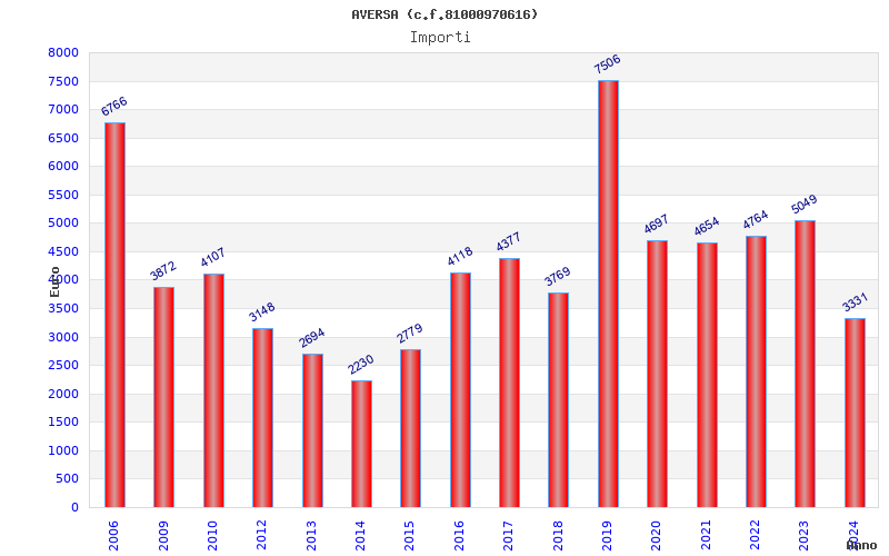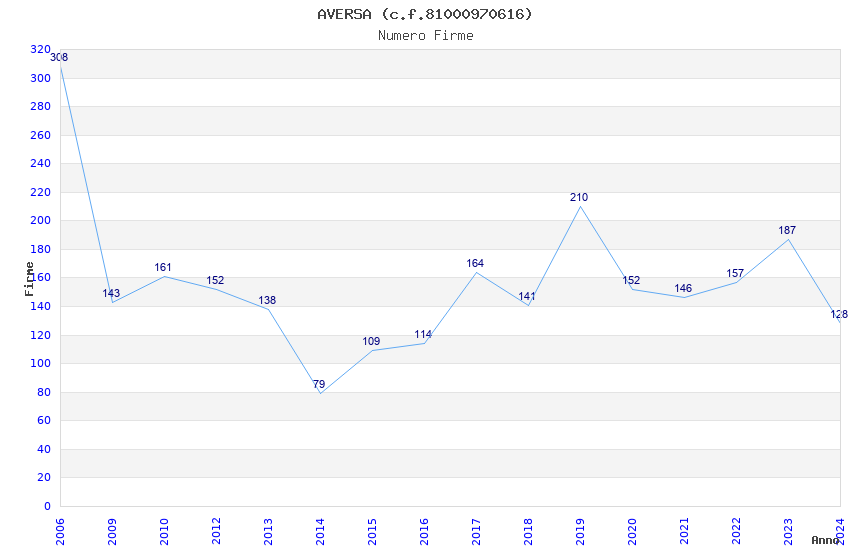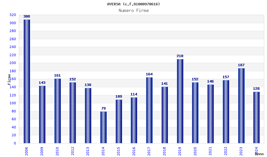 | Anno | Firme | Importi | Media | Naz. | Reg. | Prov. | Comu. |