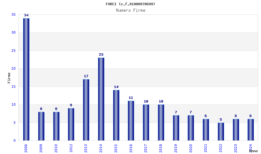 Anno Firme Importi Media Naz. Reg. Prov. Comu.