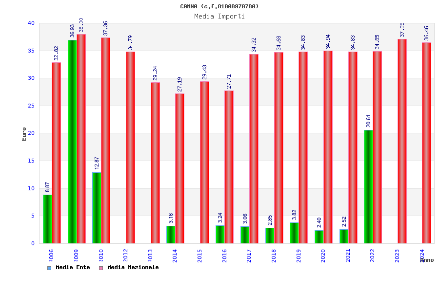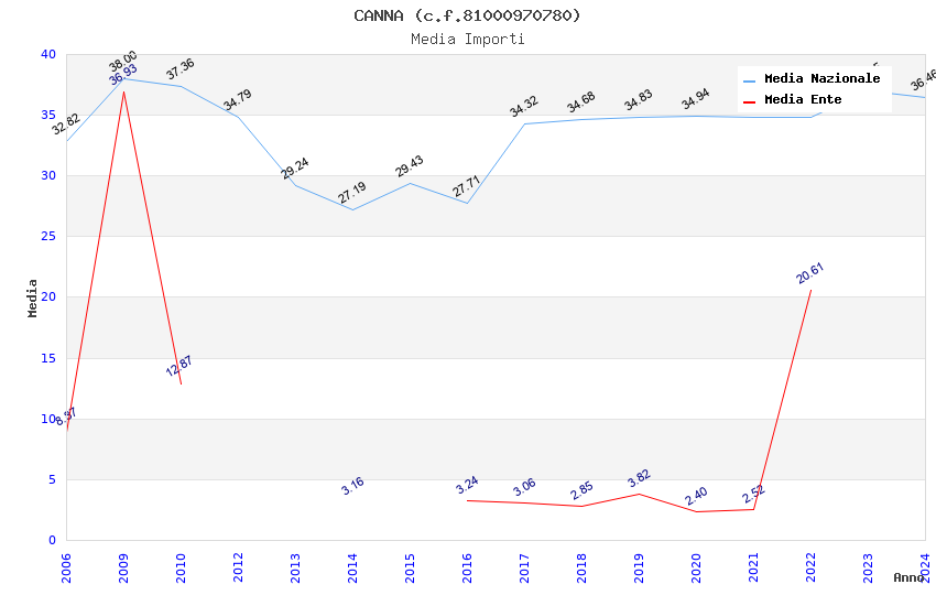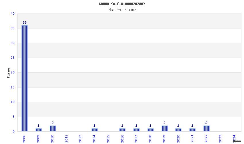 | Anno | Firme | Importi | Media | Naz. | Reg. | Prov. | Comu. |