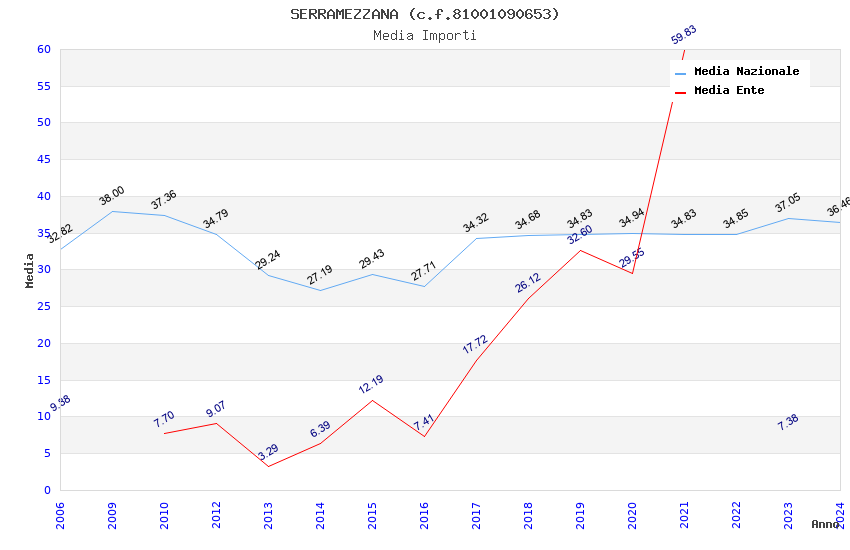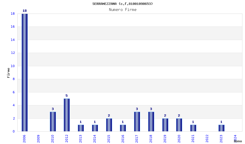 | Anno | Firme | Importi | Media | Naz. | Reg. | Prov. | Comu. |
