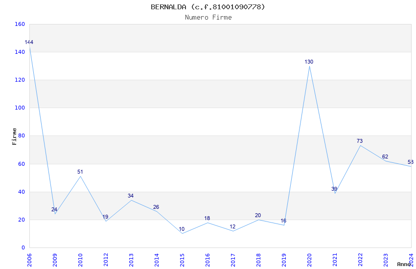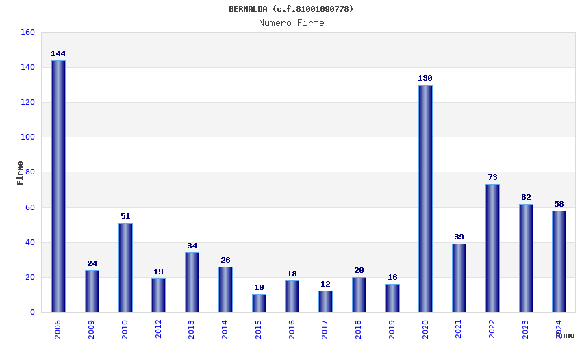 | Anno | Firme | Importi | Media | Naz. | Reg. | Prov. | Comu. |