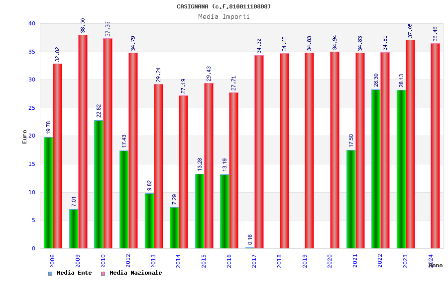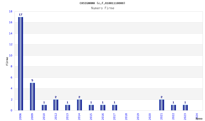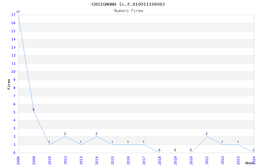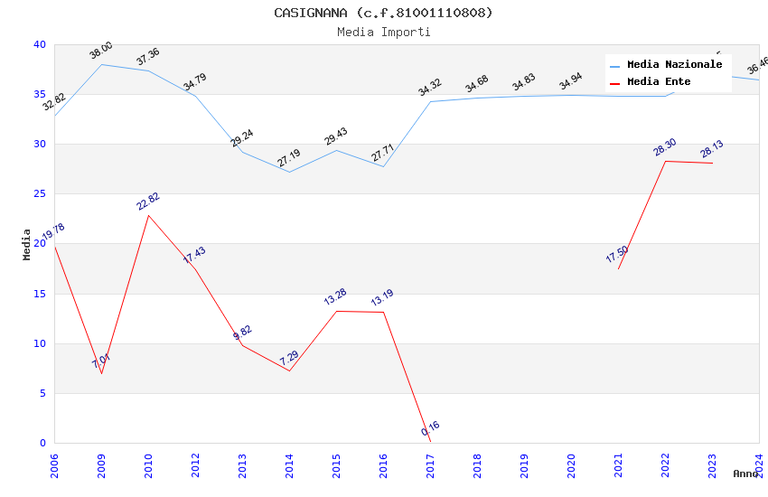 | Anno | Firme | Importi | Media | Naz. | Reg. | Prov. | Comu. |