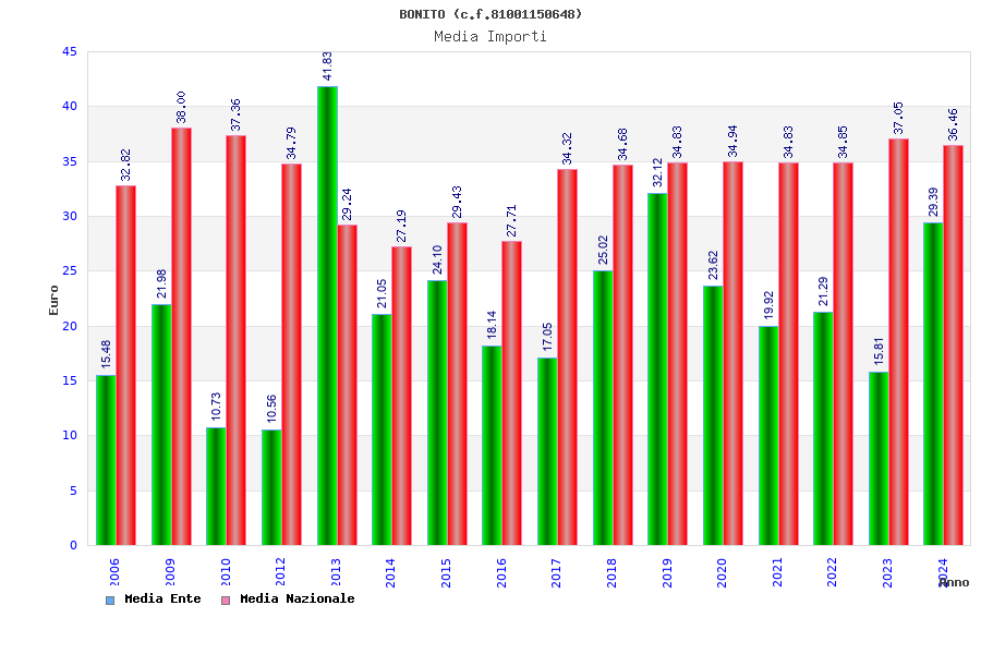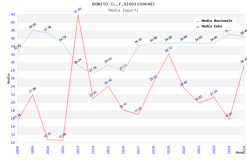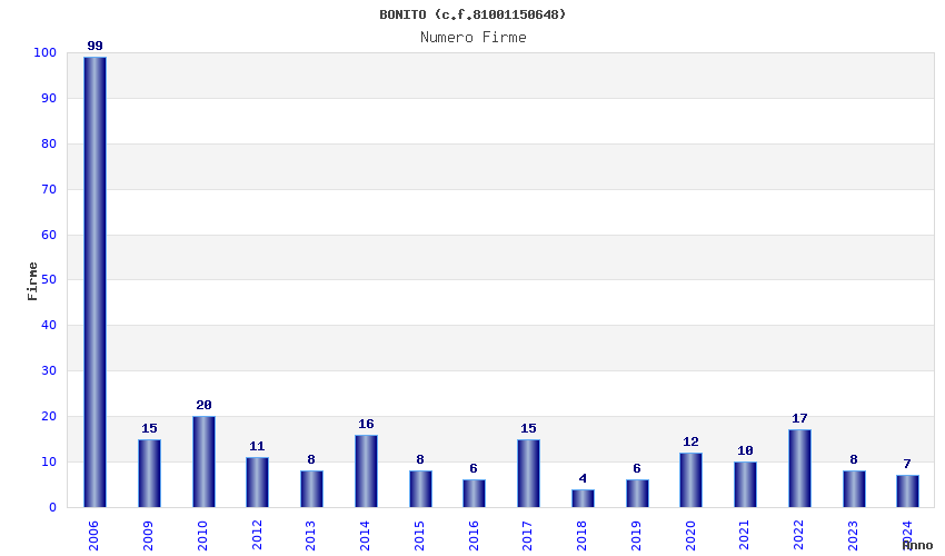 | Anno | Firme | Importi | Media | Naz. | Reg. | Prov. | Comu. |