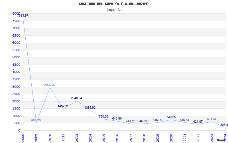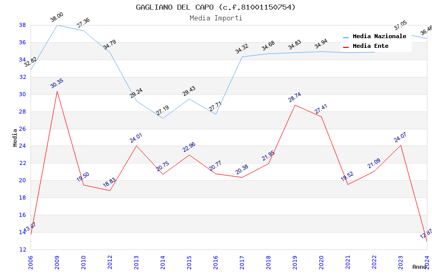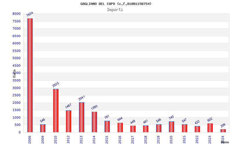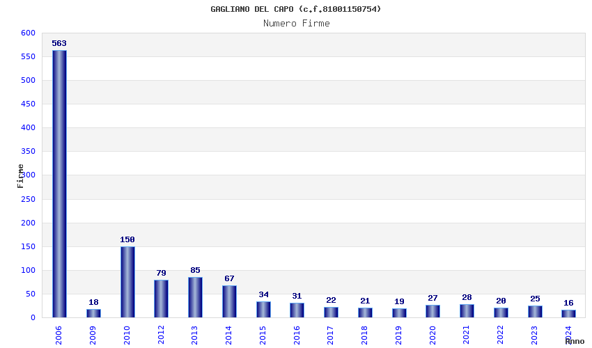 | Anno | Firme | Importi | Media | Naz. | Reg. | Prov. | Comu. |