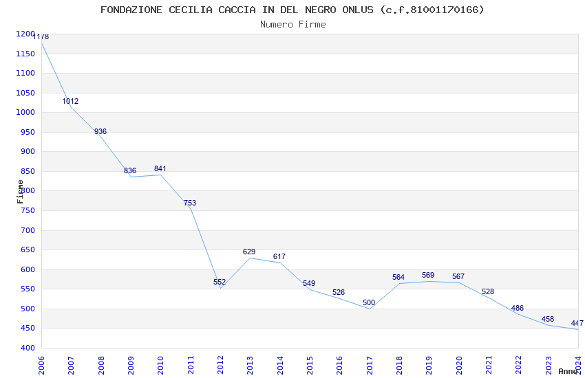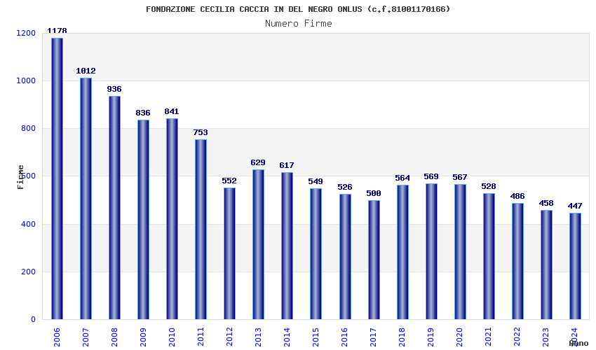 | Anno | Firme | Importi | Media | Naz. | Reg. | Prov. | Comu. |