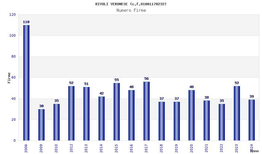 | Anno | Firme | Importi | Media | Naz. | Reg. | Prov. | Comu. |