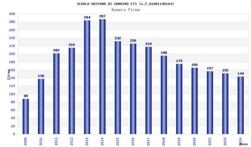 | Anno | Firme | Importi | Media | Naz. | Reg. | Prov. | Comu. |