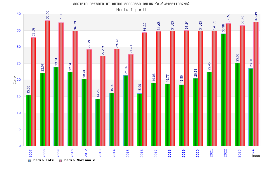 | Anno | Firme | Importi | Media | Naz. | Reg. | Prov. | Comu. |