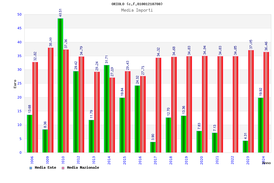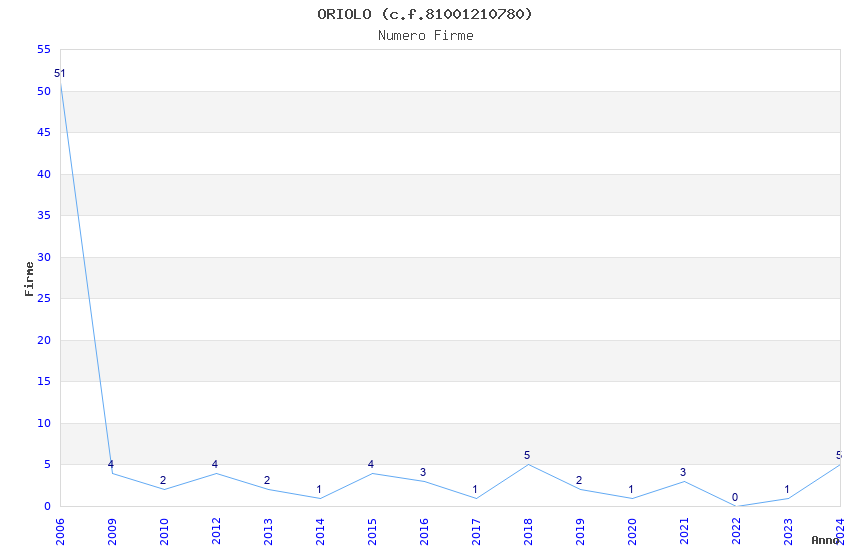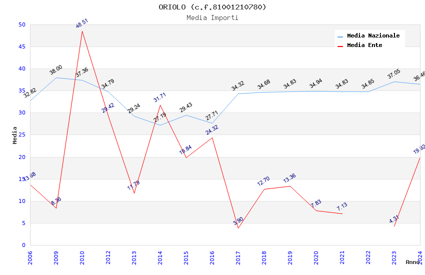 | Anno | Firme | Importi | Media | Naz. | Reg. | Prov. | Comu. |