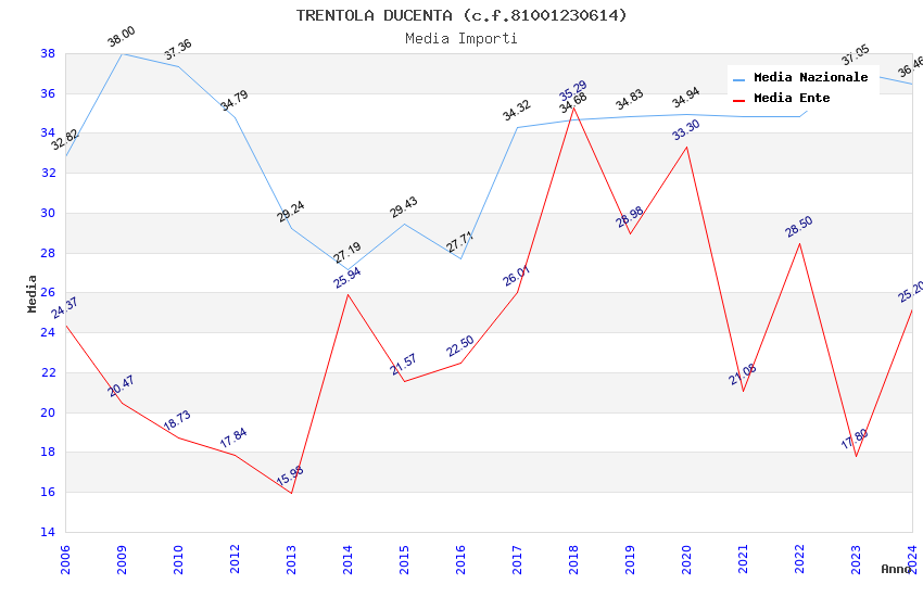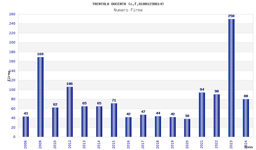 | Anno | Firme | Importi | Media | Naz. | Reg. | Prov. | Comu. |