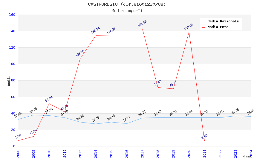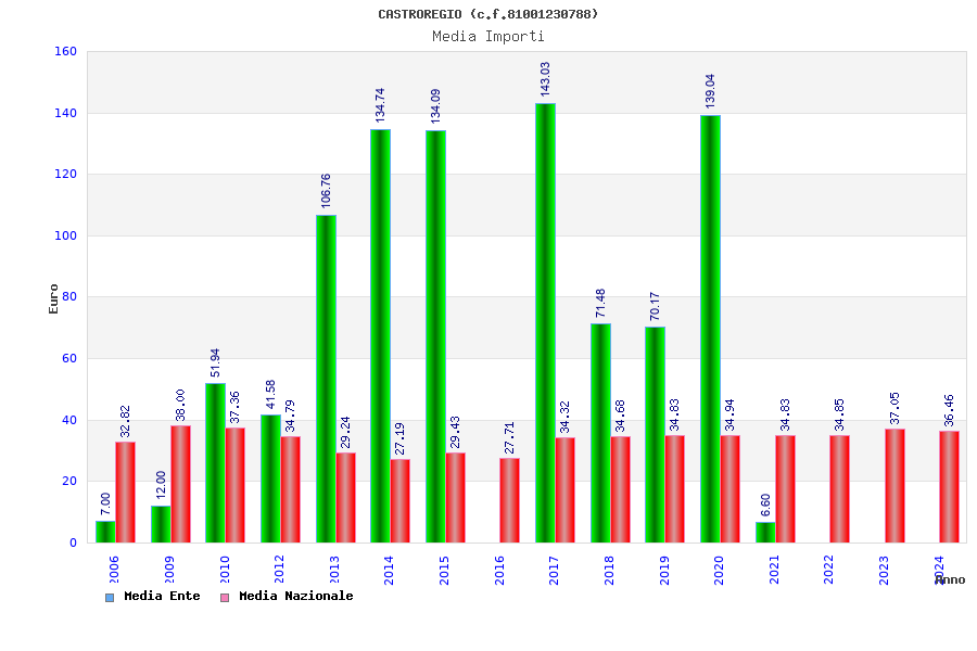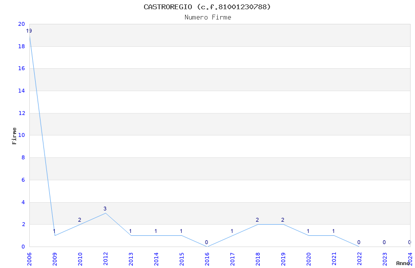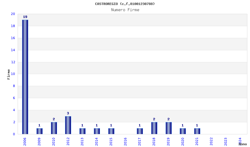 | Anno | Firme | Importi | Media | Naz. | Reg. | Prov. | Comu. |