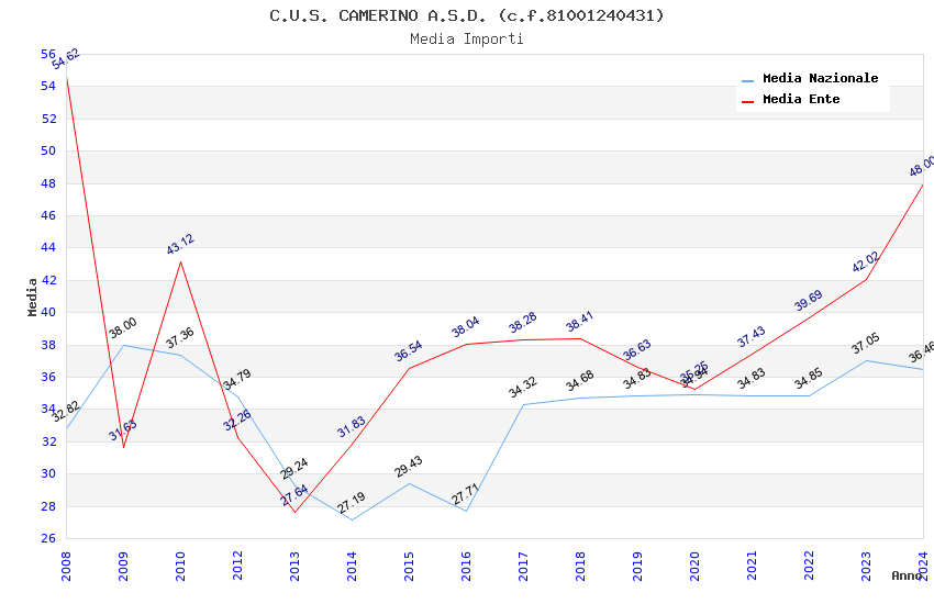 | Anno | Firme | Importi | Media | Naz. | Reg. | Prov. | Comu. |