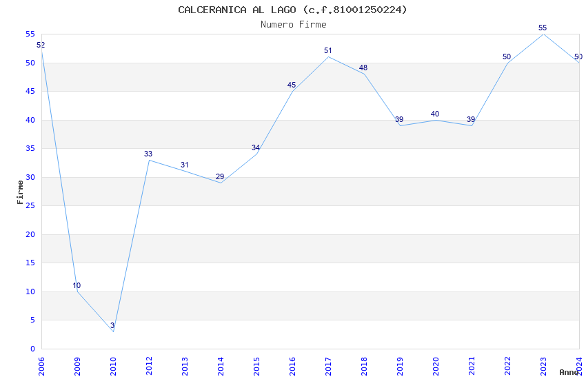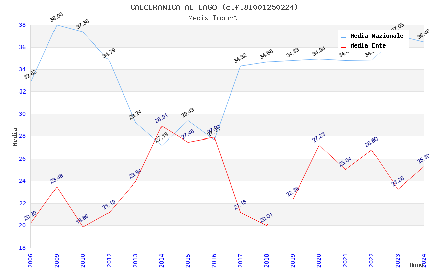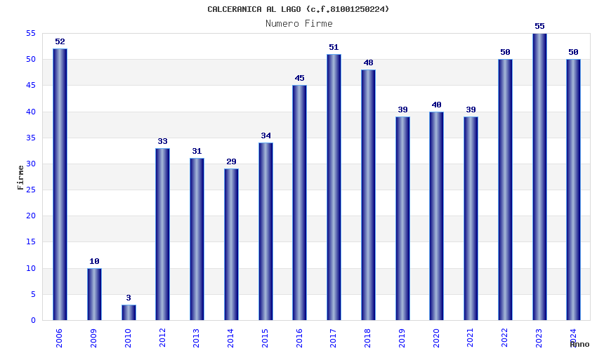 | Anno | Firme | Importi | Media | Naz. | Reg. | Prov. | Comu. |